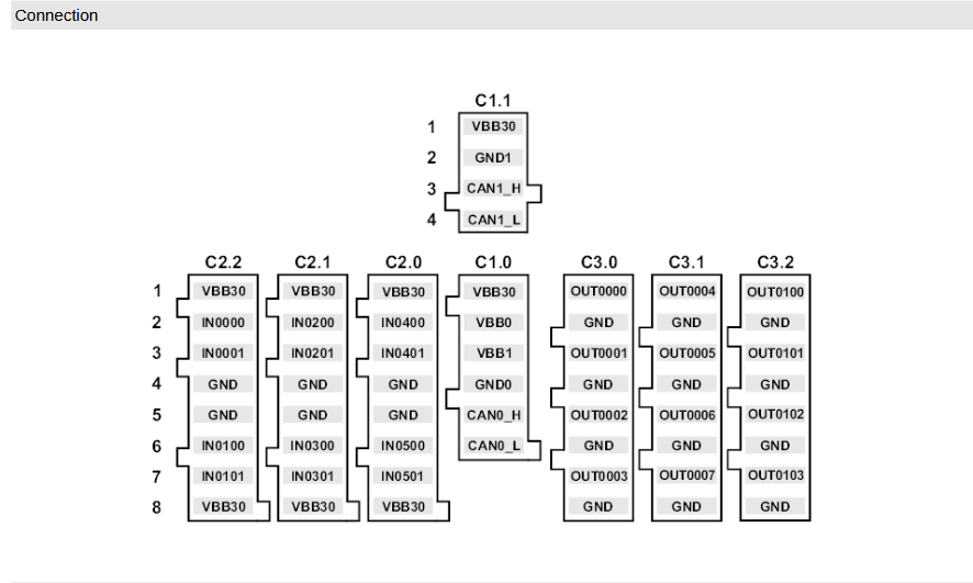Connect the IFM CAN adapter to the CAN 0 of the IFM controller at C1.0: