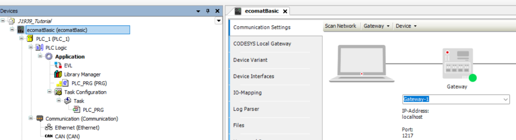 Next step is to make sure that your PLC is found by the Codesys CAN Gateway.
